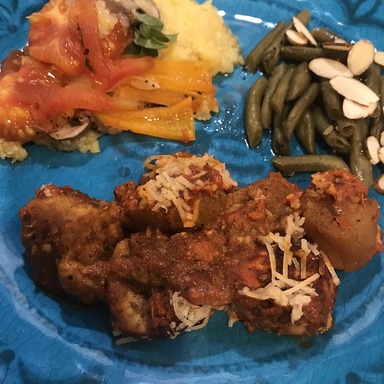 I accompany it with creamy polenta, sauteed peppers and onions and some lemony green beans with slivered almonds.
