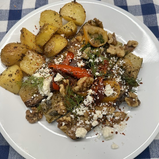 I’ve been increasing my Mediterranean recipes lately.  This could easily star in a Greek cafe as a plant based main dish or a side to some kabobs.